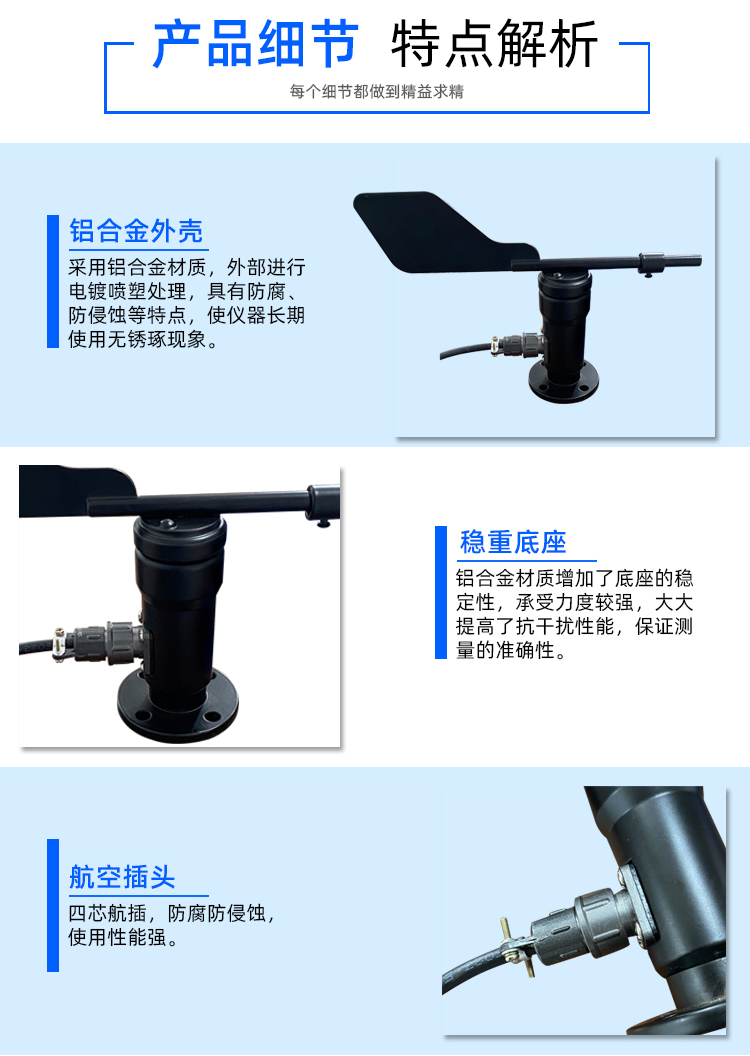 風(fēng)向傳感器采用低慣性風(fēng)標(biāo)及電位器,靈敏度高,精度高。信號處理單元可根據(jù)用戶需求輸出各種信號。本產(chǎn)品具有量程大、線性好、觀測方便、穩(wěn)定可靠等優(yōu)點,可廣泛用于氣象、海洋、環(huán)境、機場、港口、實驗室、工農(nóng)業(yè)及交通等領(lǐng)域。